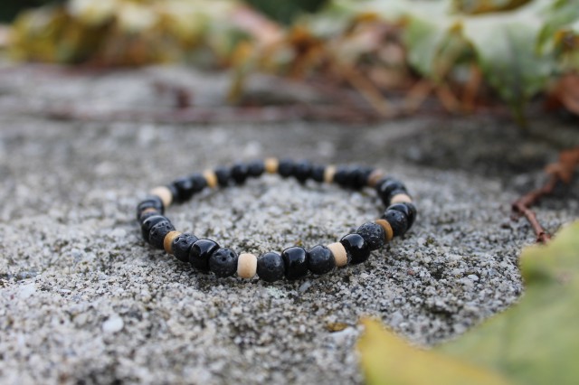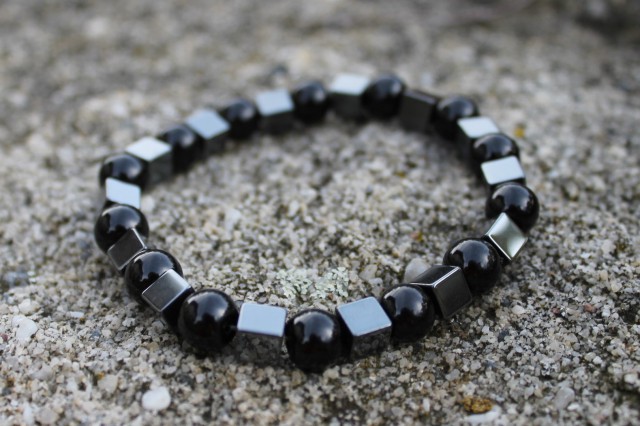 Obszidián, Hematit és fa férfi karkötő