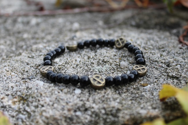 Obszidián és réz férfi karkötő